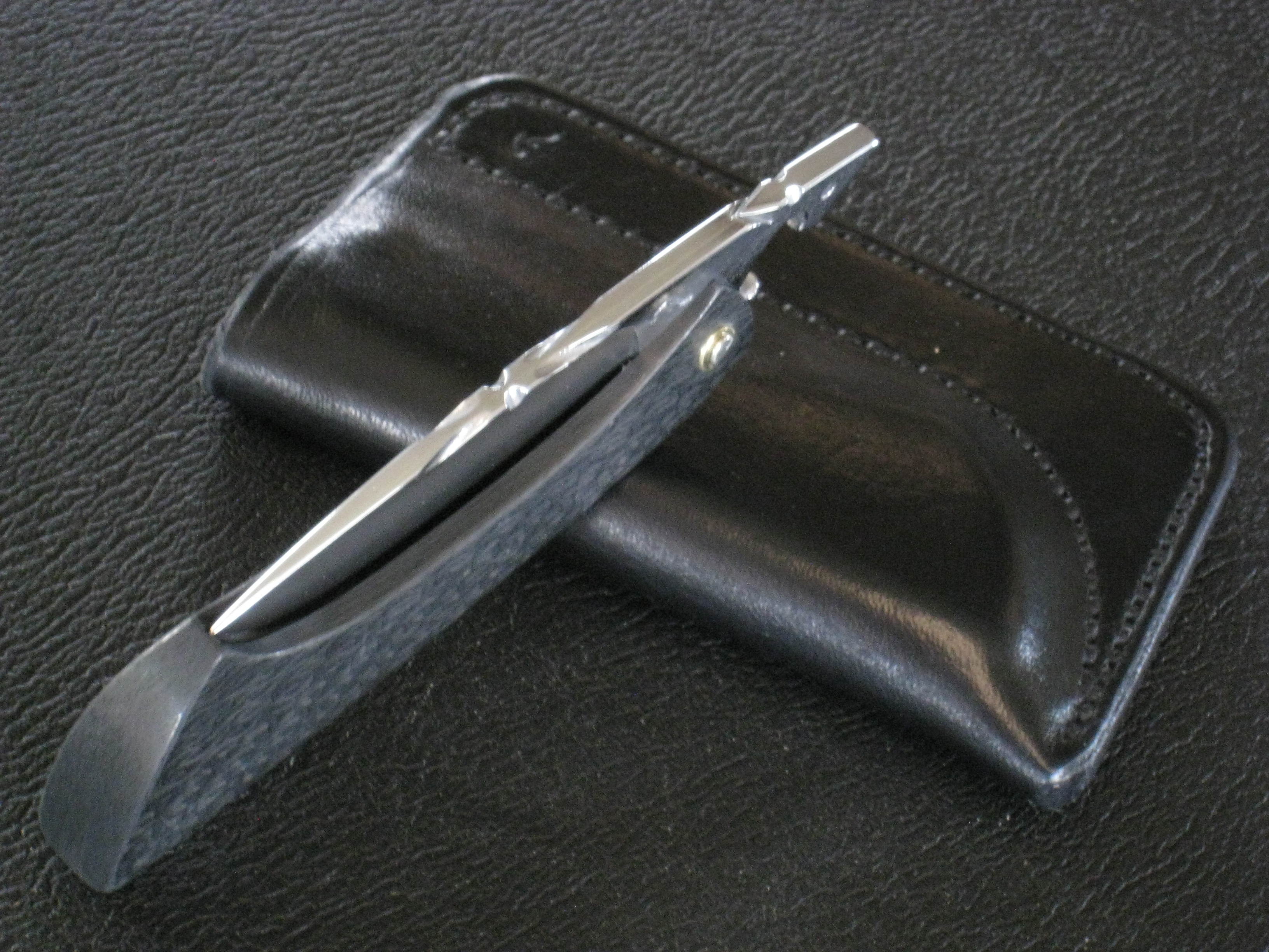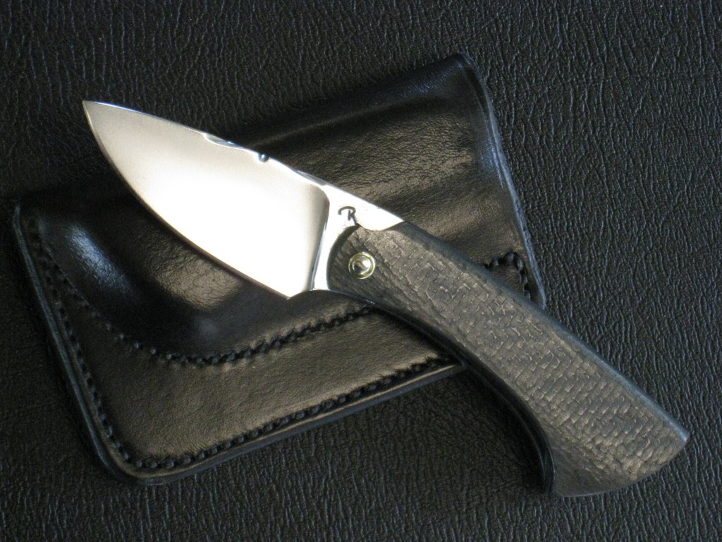 Un « Requin Mousse » et son étui de poche en cuir noir. Vendu.