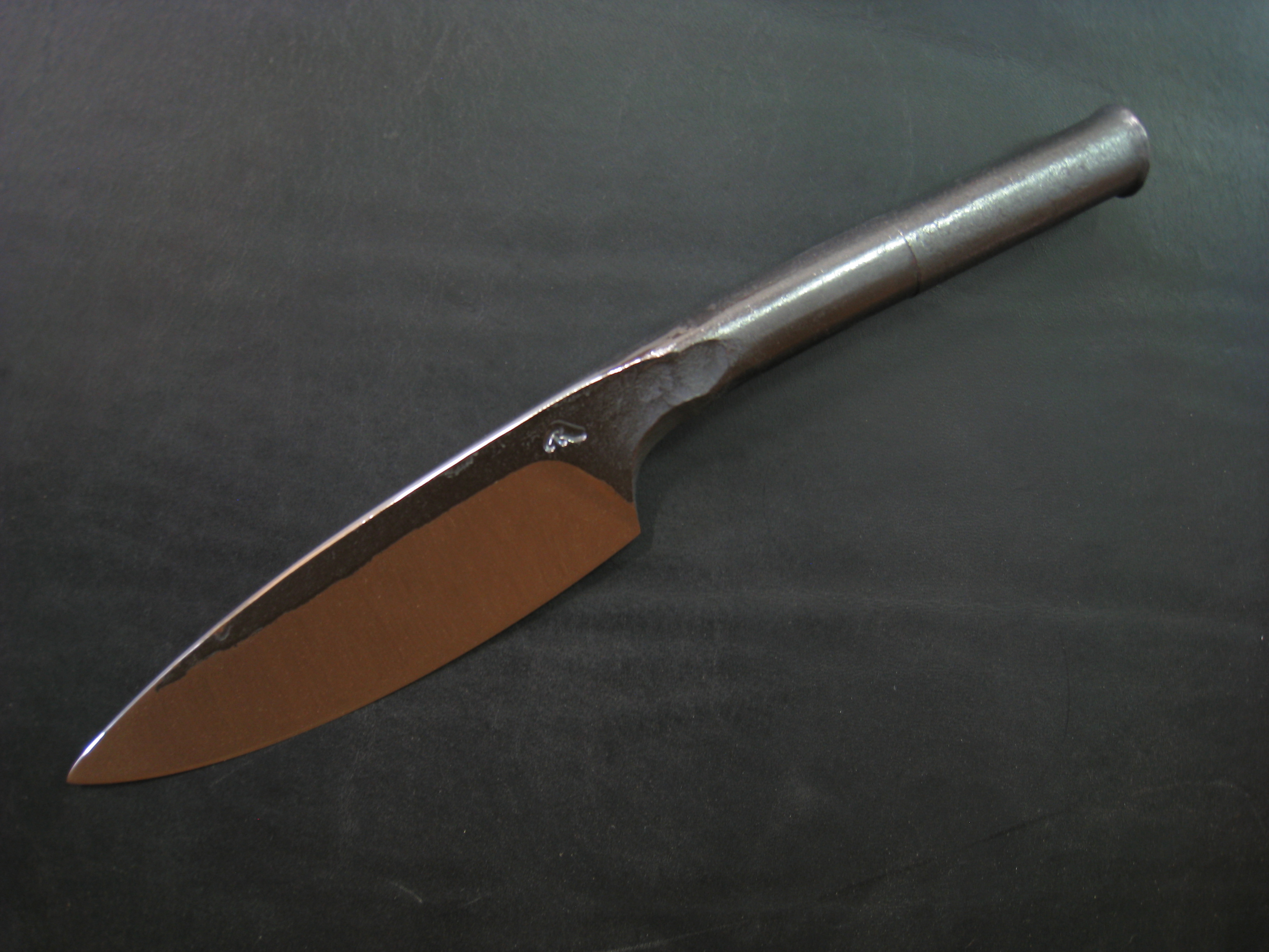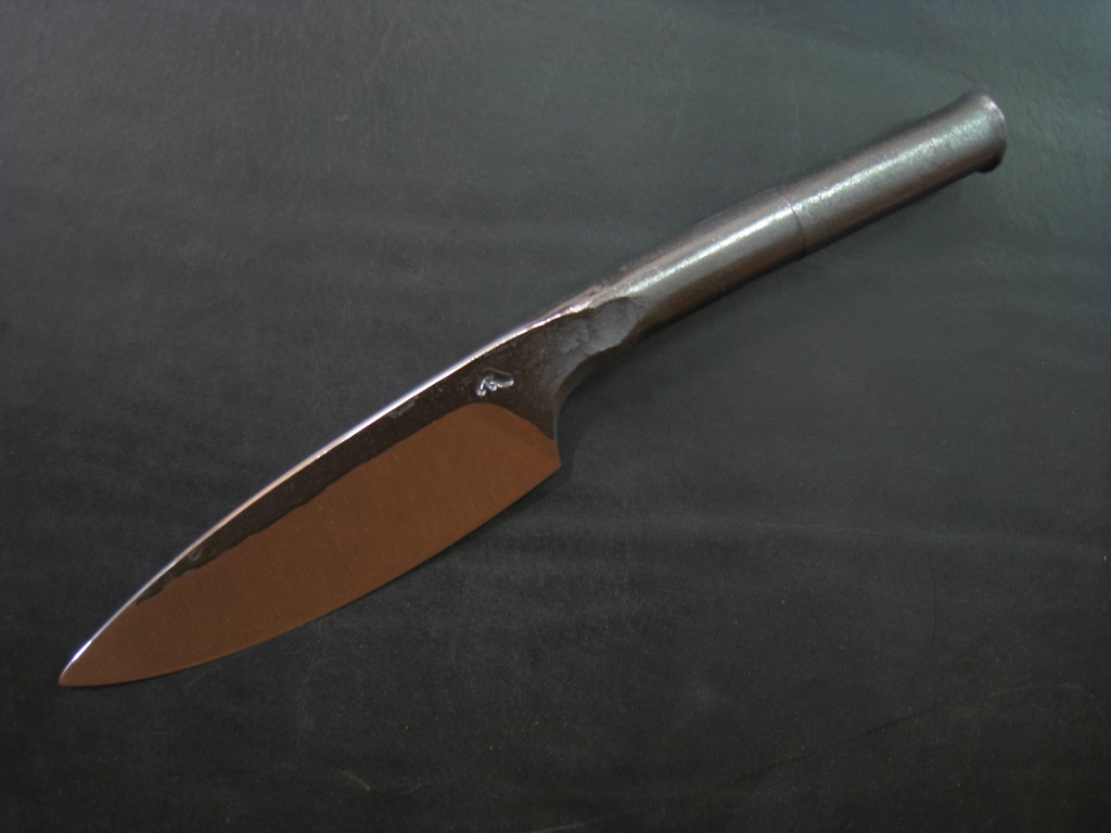 Petit couteau forgé dans un axe de chenille de char d’assaut. Vendu.