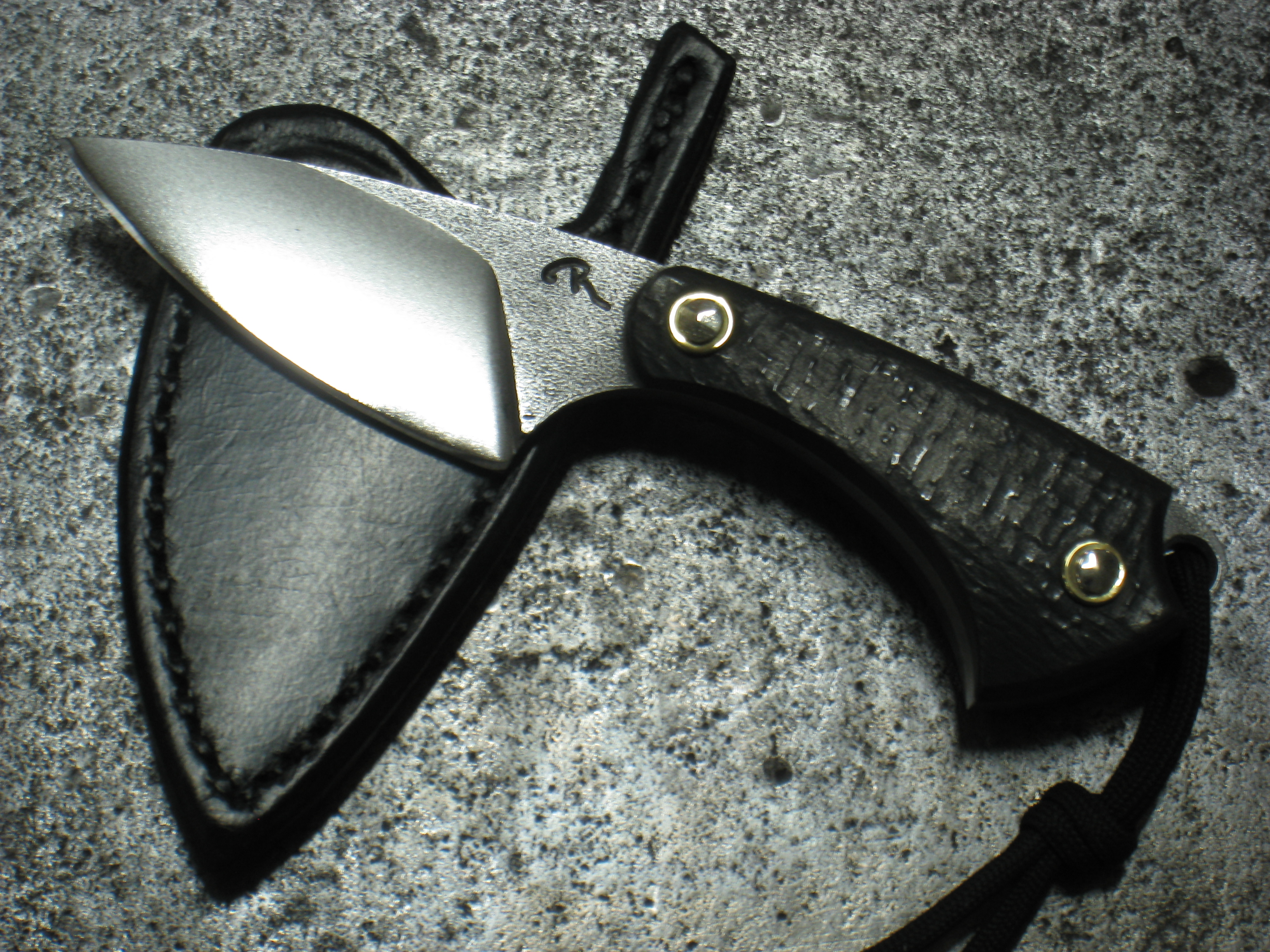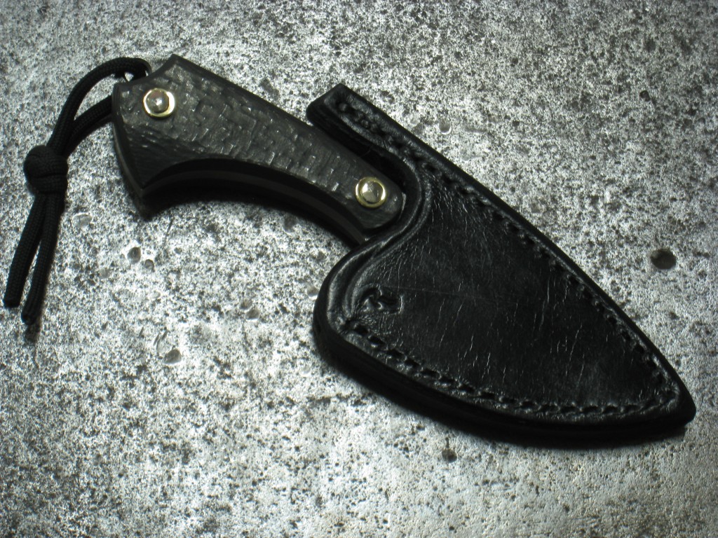 Un petit fixe et sa pochette. Lame Xc 75 avec plaquettes fibre de carbone structurée.Vendu.