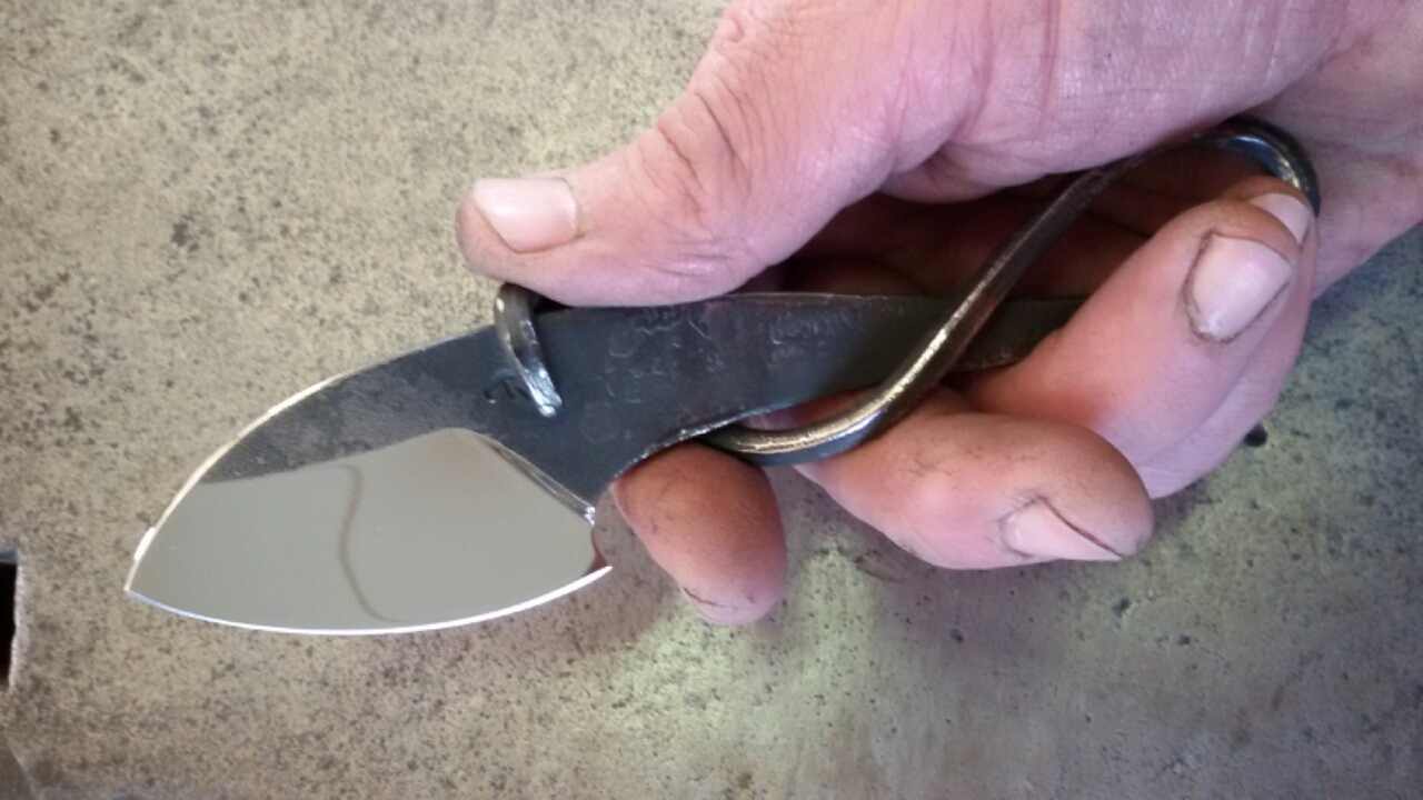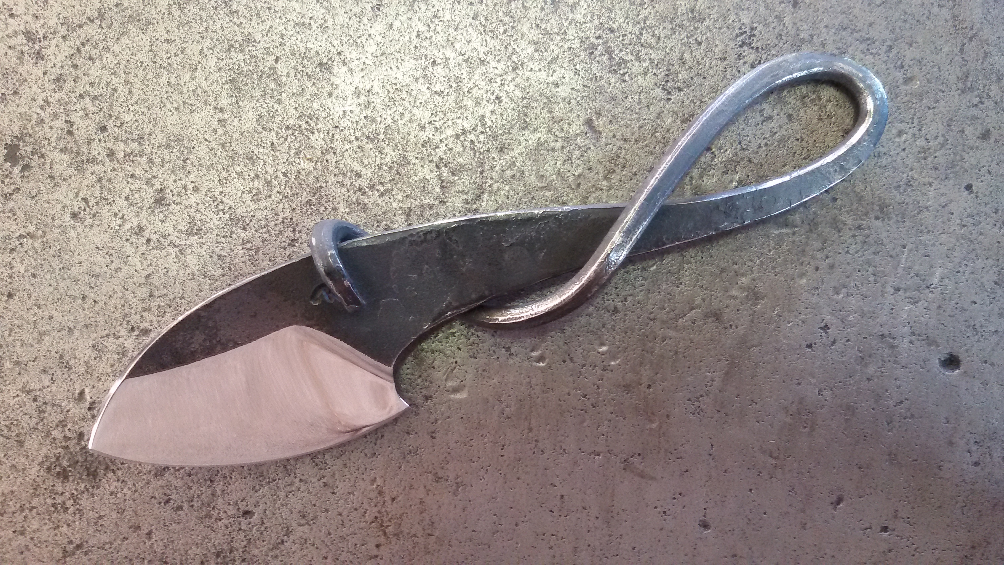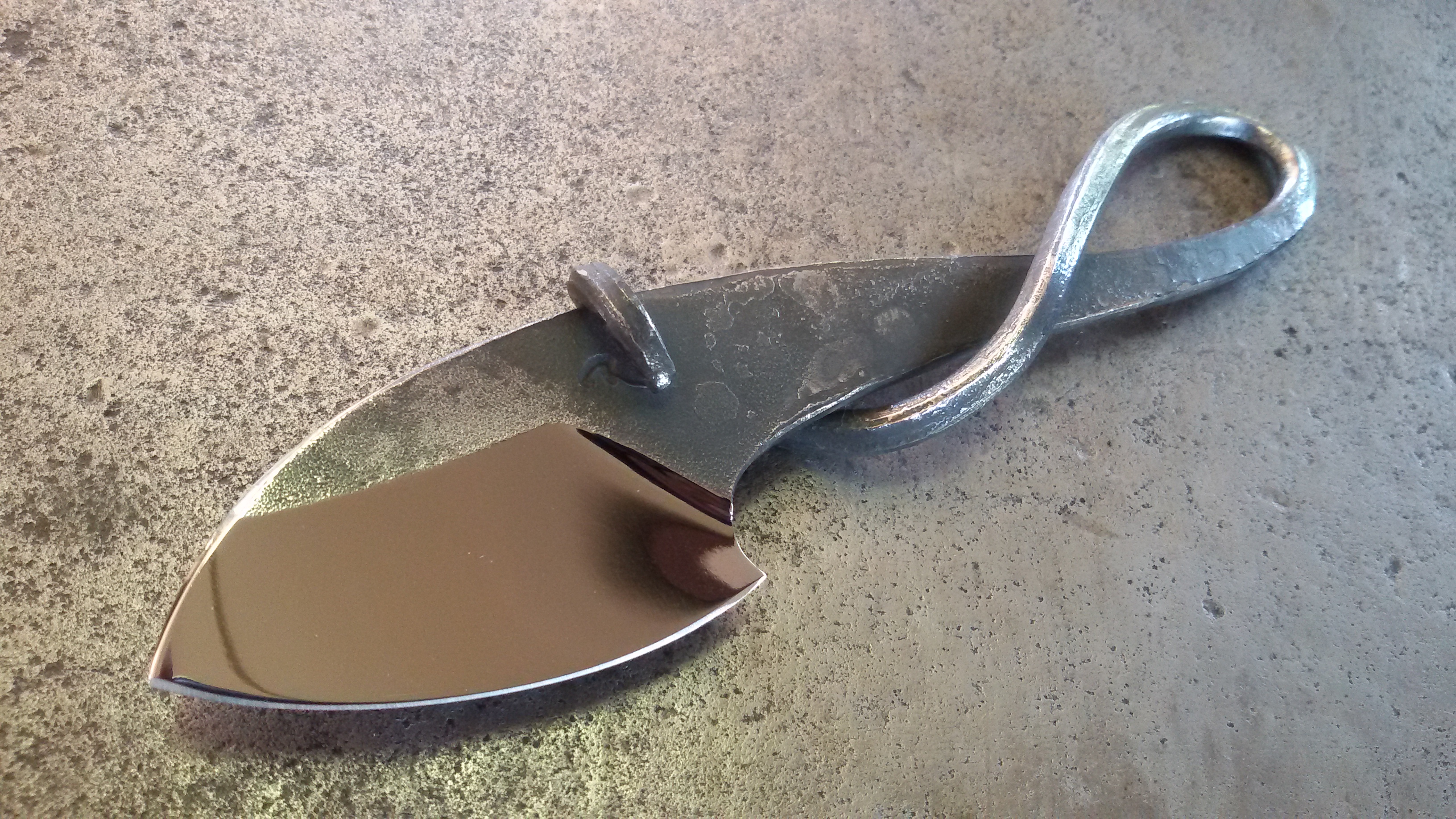 Brut de forge « La Vrille » Xc75 avec lame polie miroir. Vendu..
