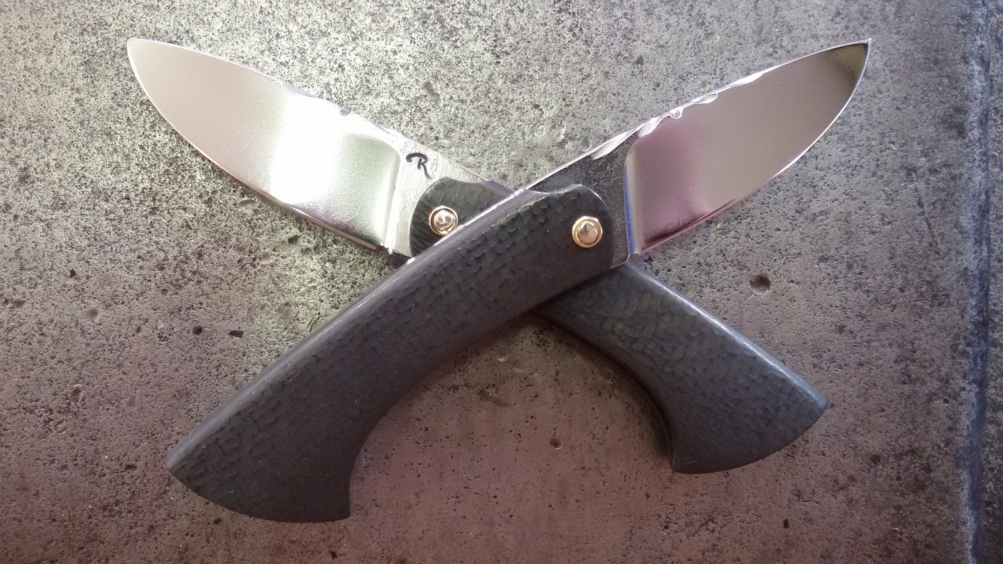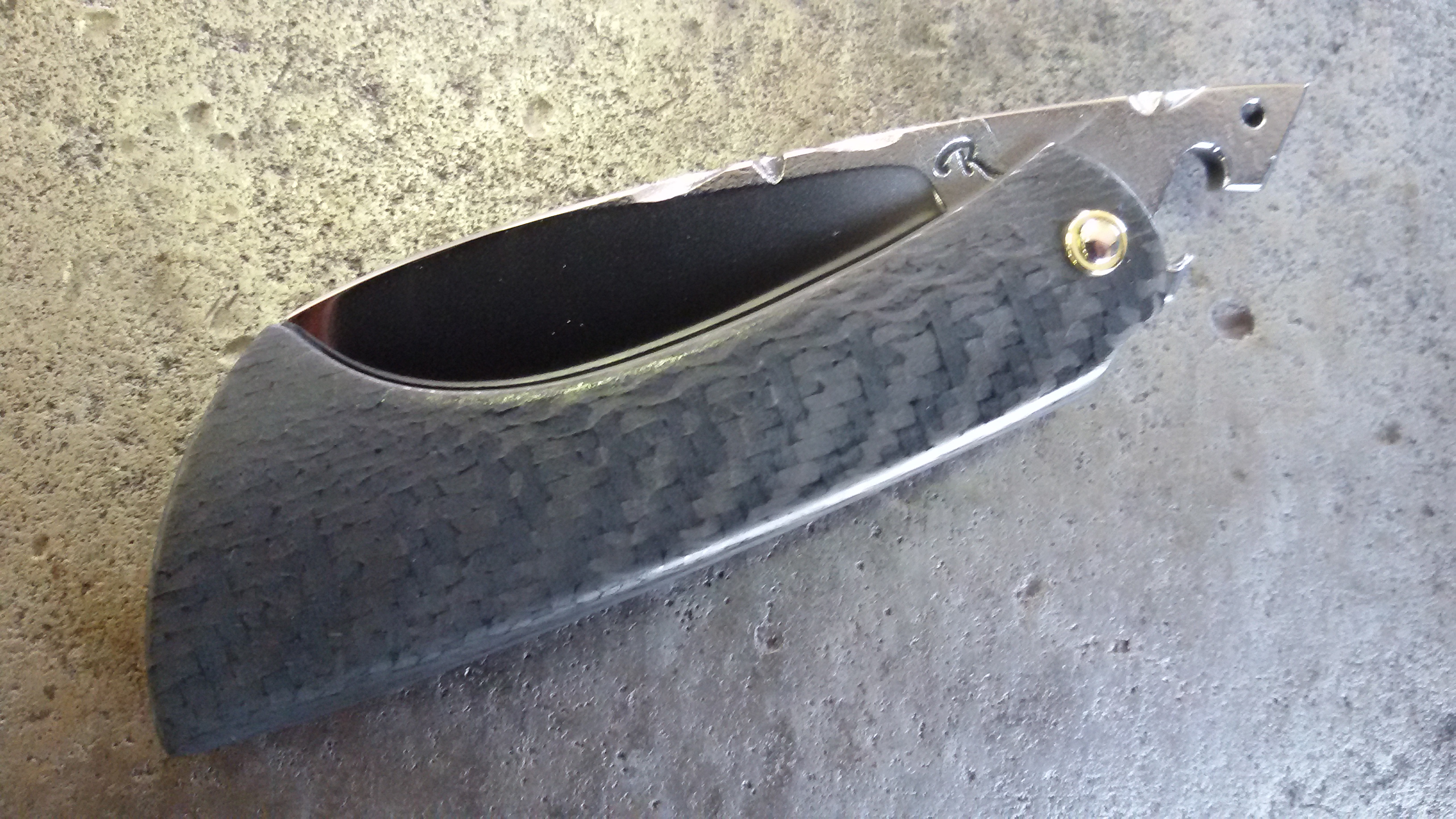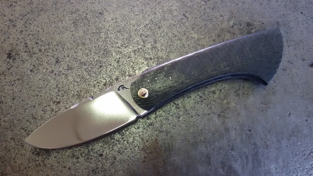 Piémontais « Requin Mousse » avec lame de 68mm en 100c6 et manche fibre de carbone. Vendu.
