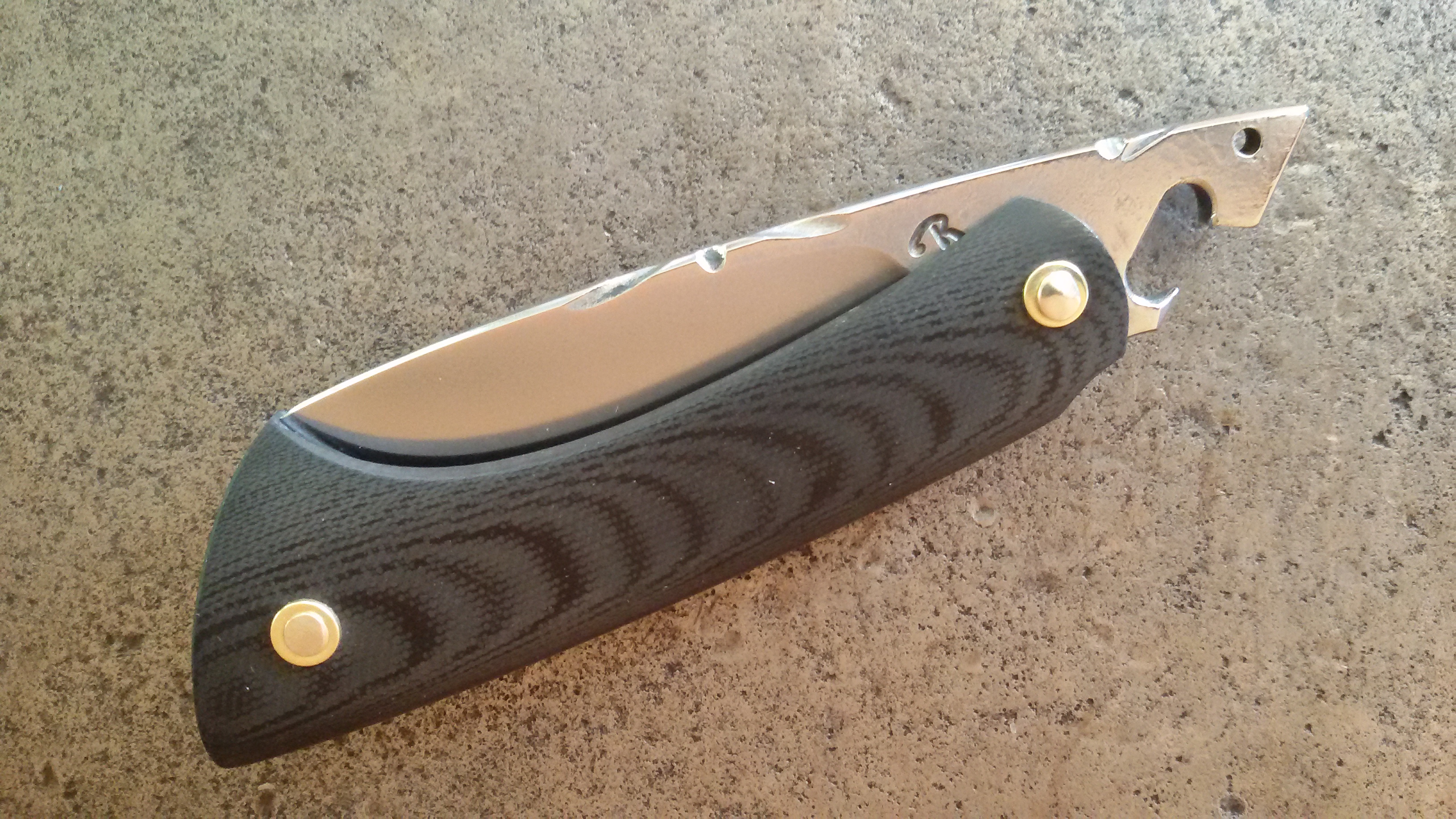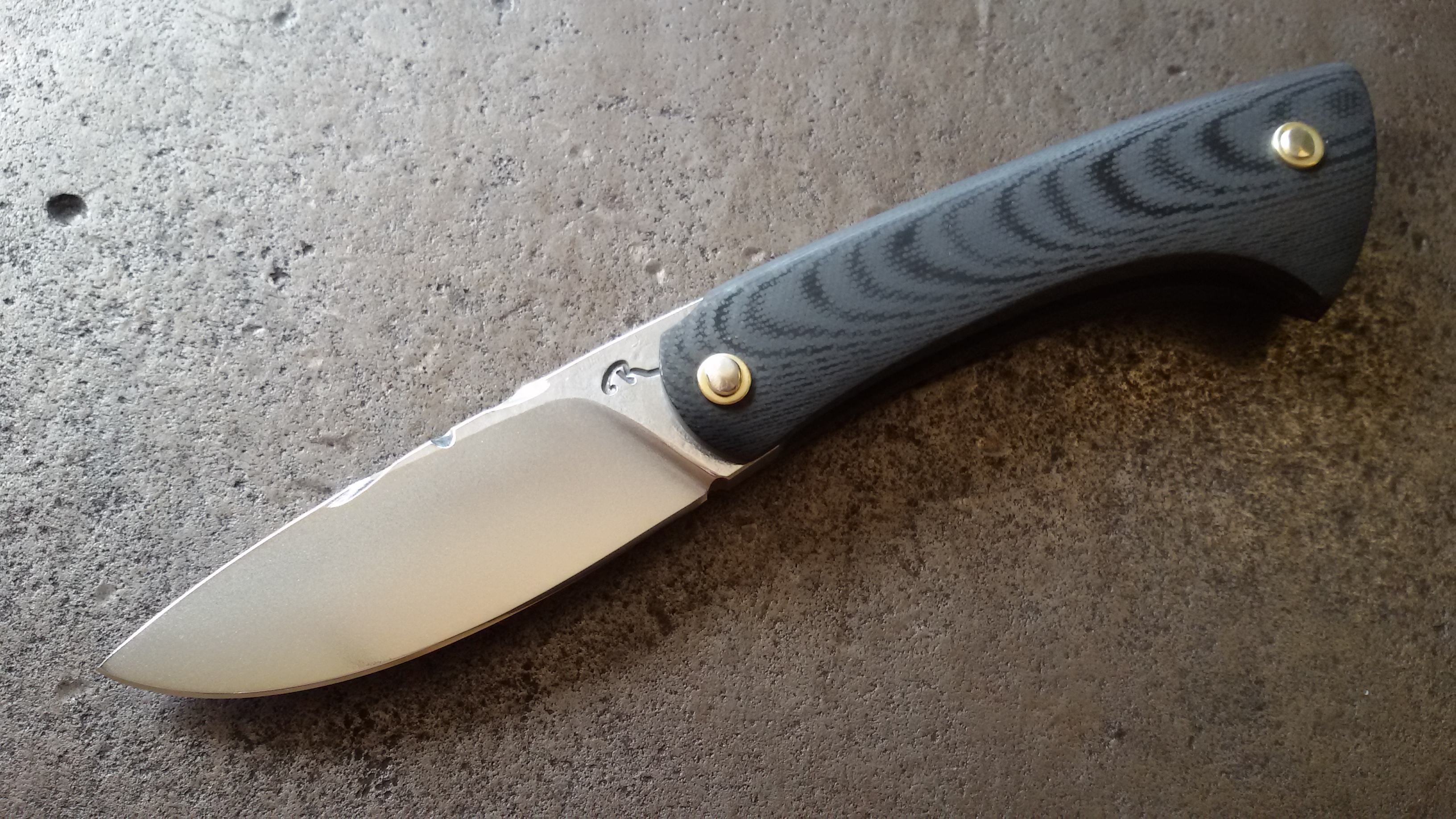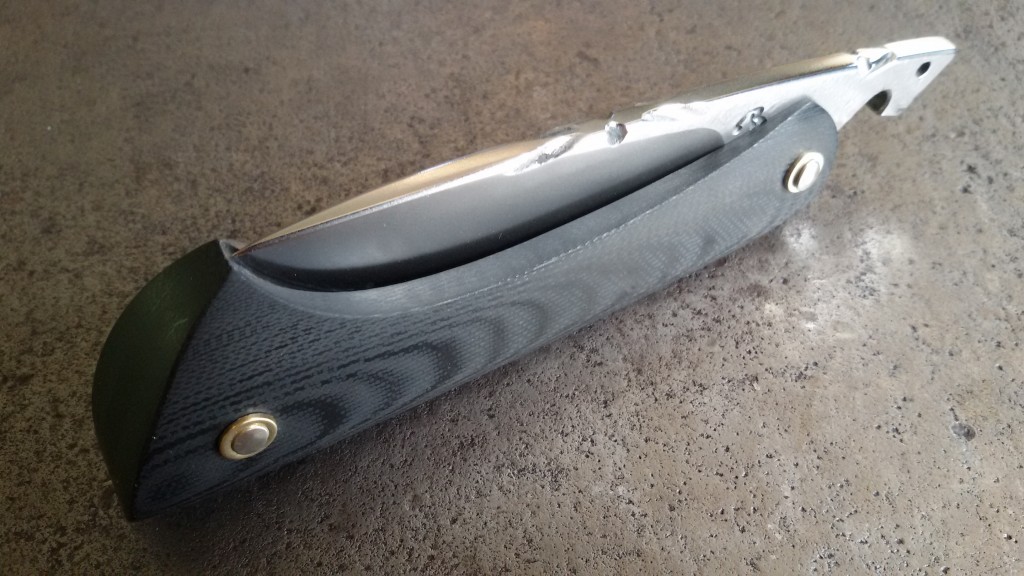 Requin Mousse avec manche G10 Noir et lame 100 C6 Sablée. Vendu.