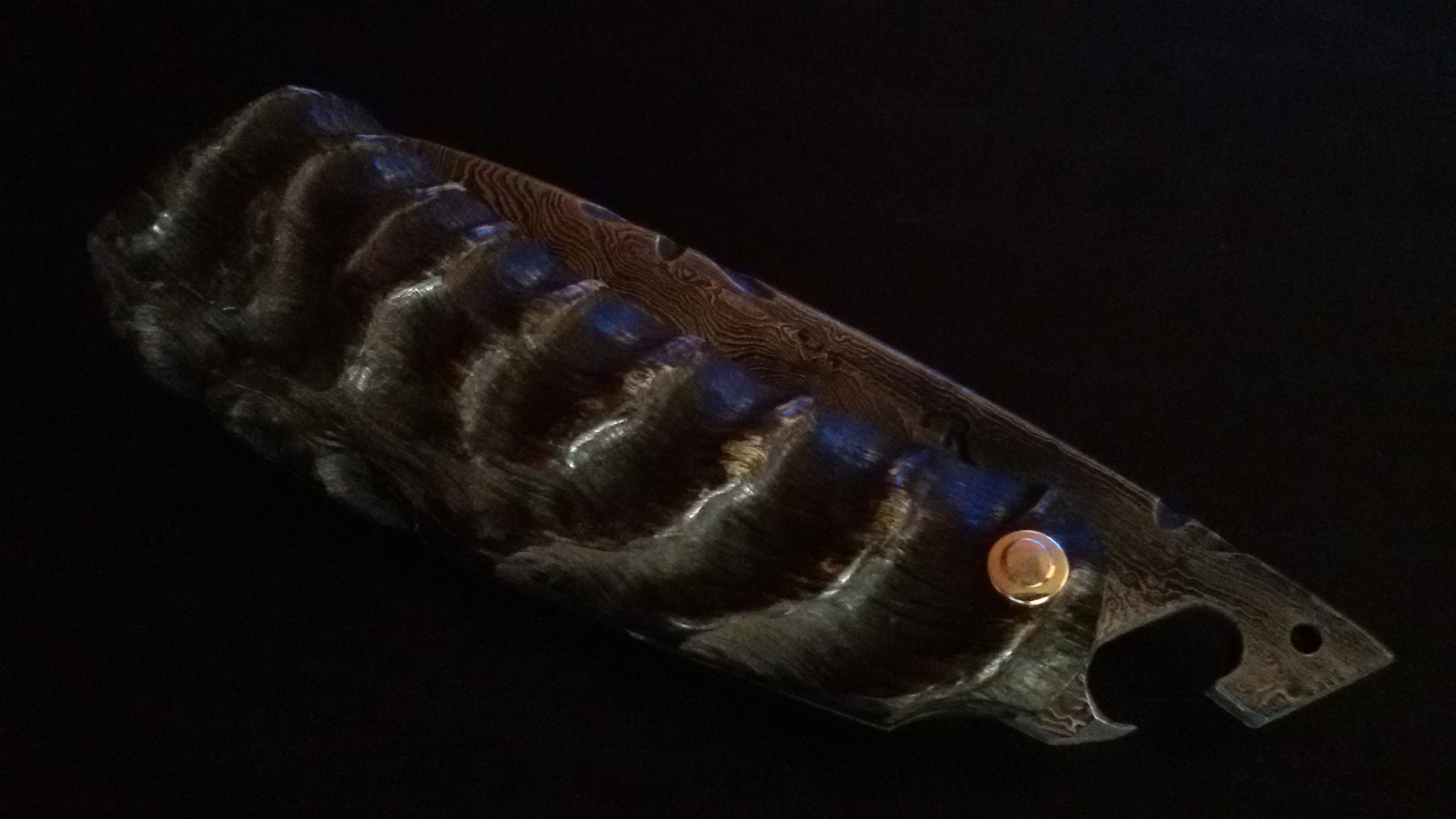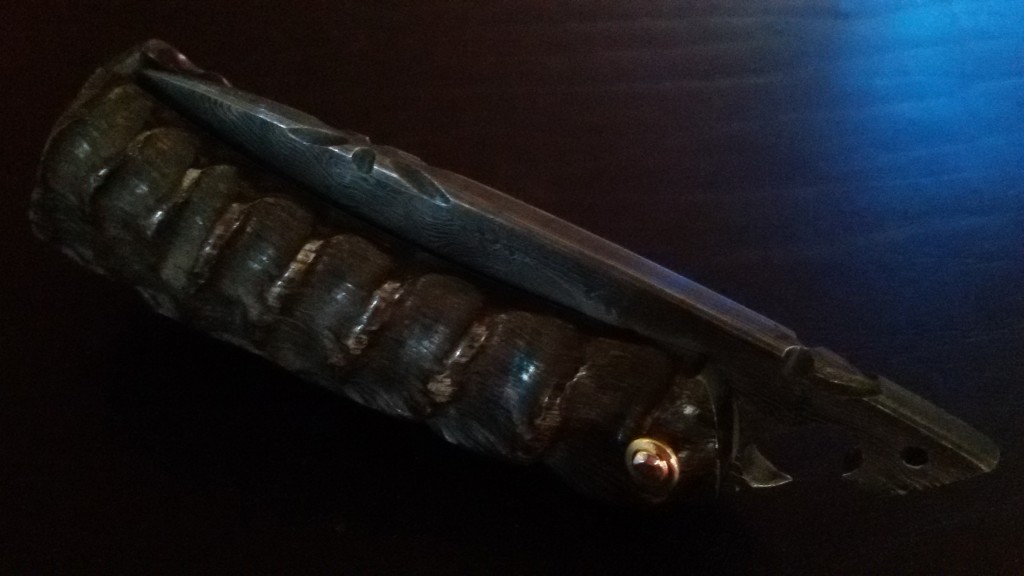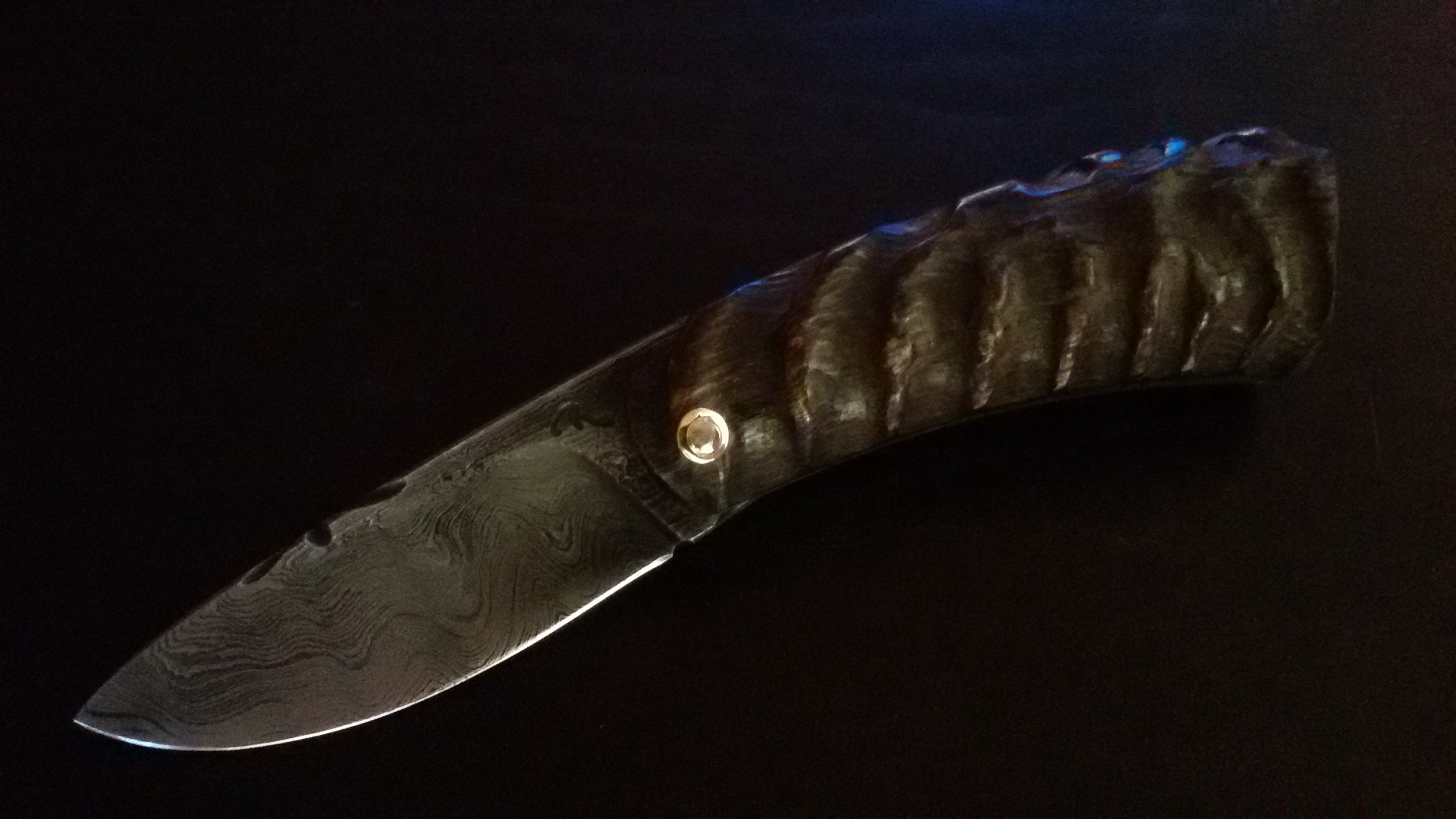 Requin Mousse manche gazelle et lame damas de chez Thierry Desnoix. Vendu.