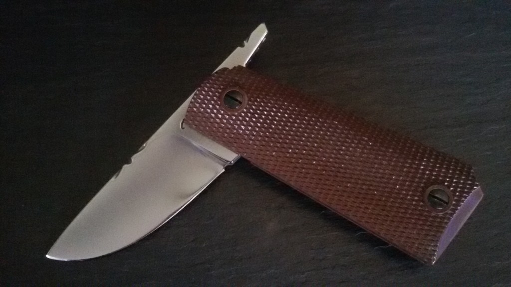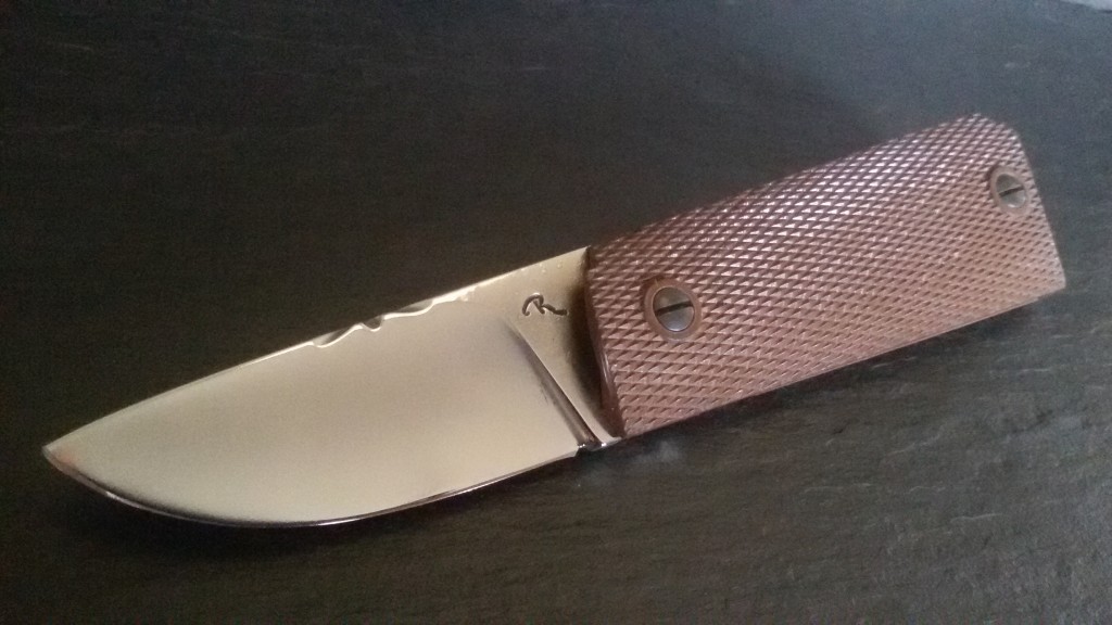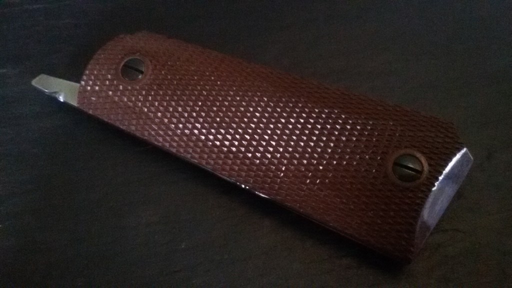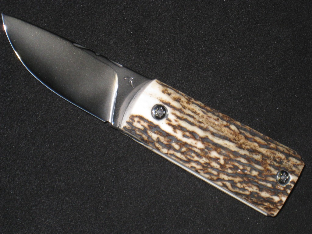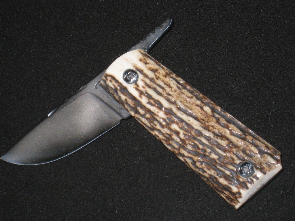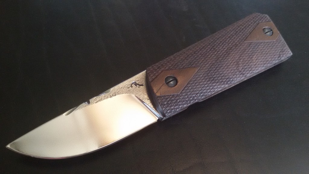 Le « Onze » Requin Mousse avec plaquettes de Colt 1911 en bois de cerf et lame Xc 75. Vendu.