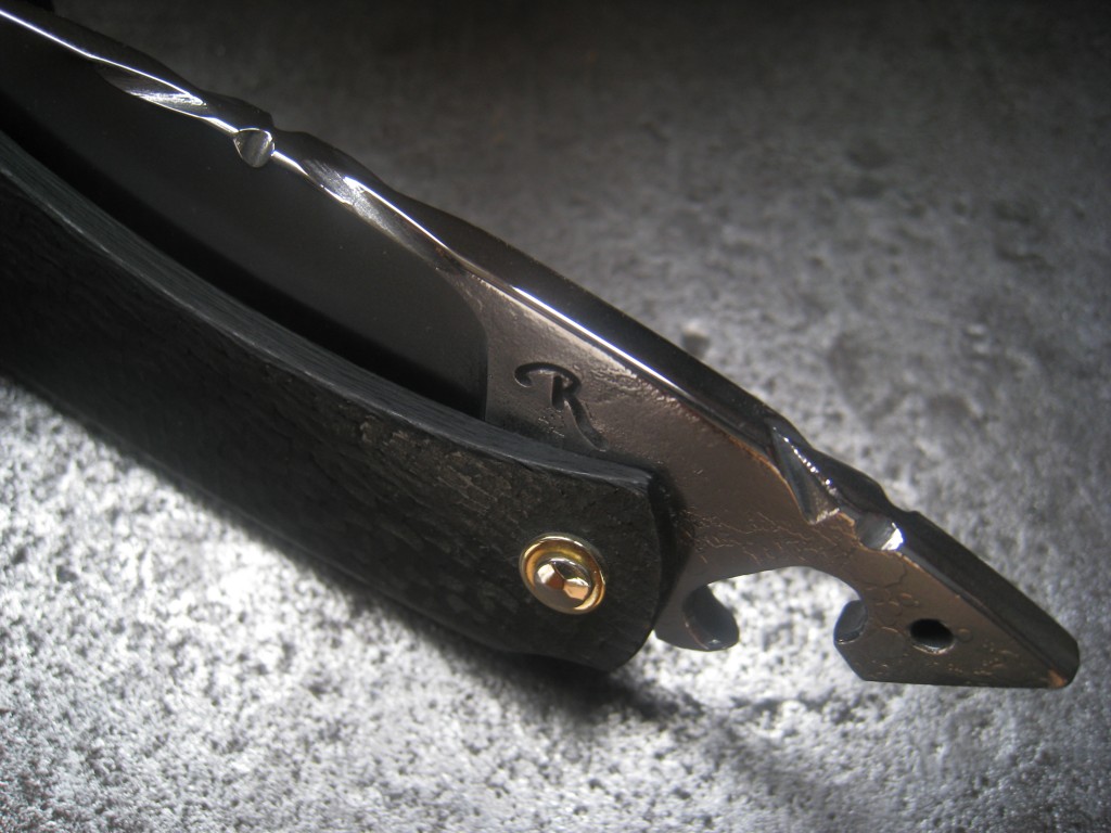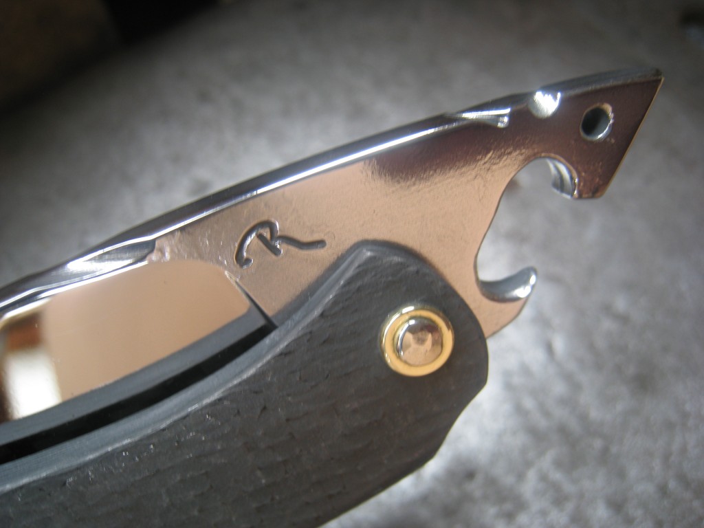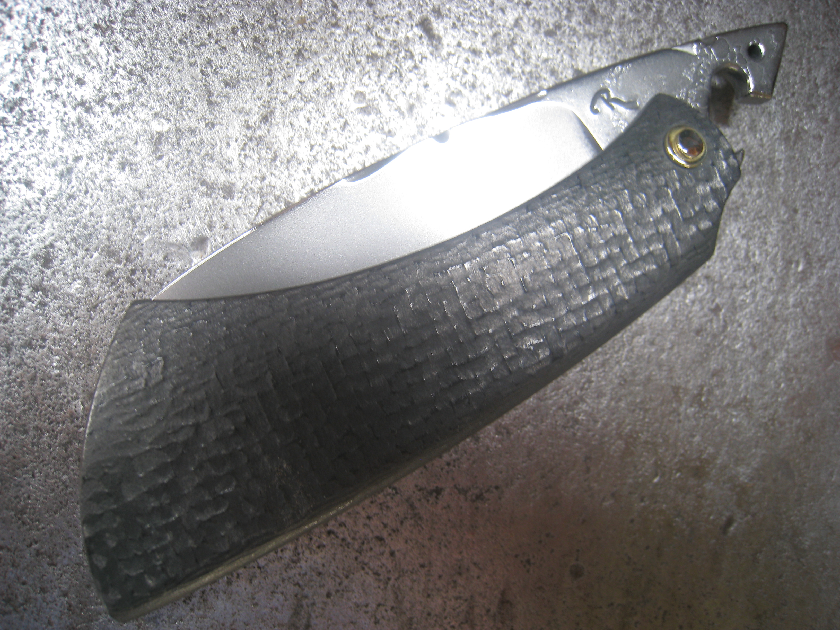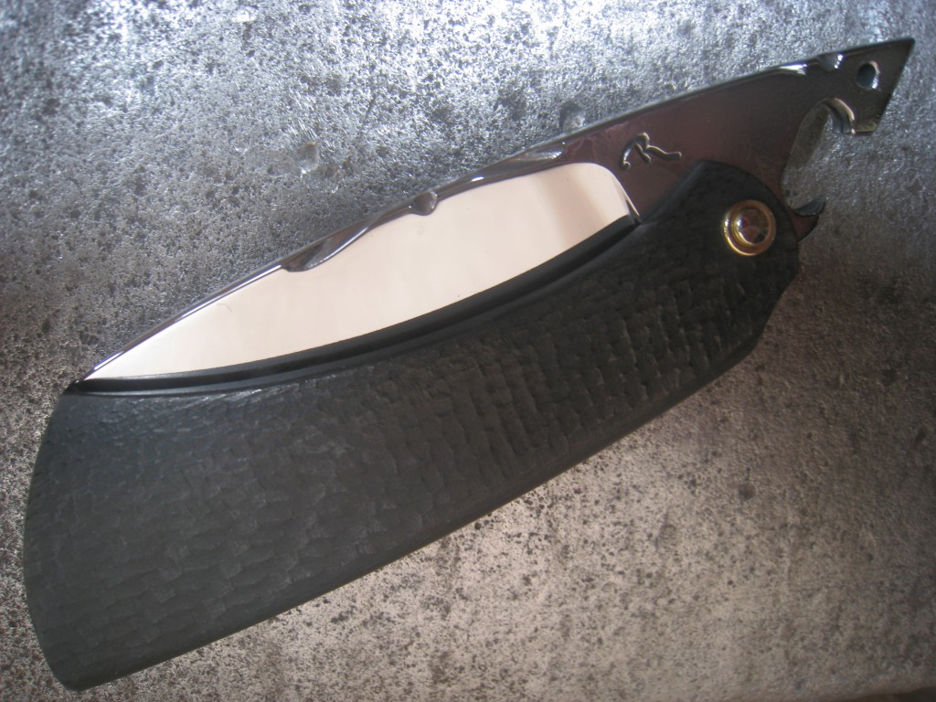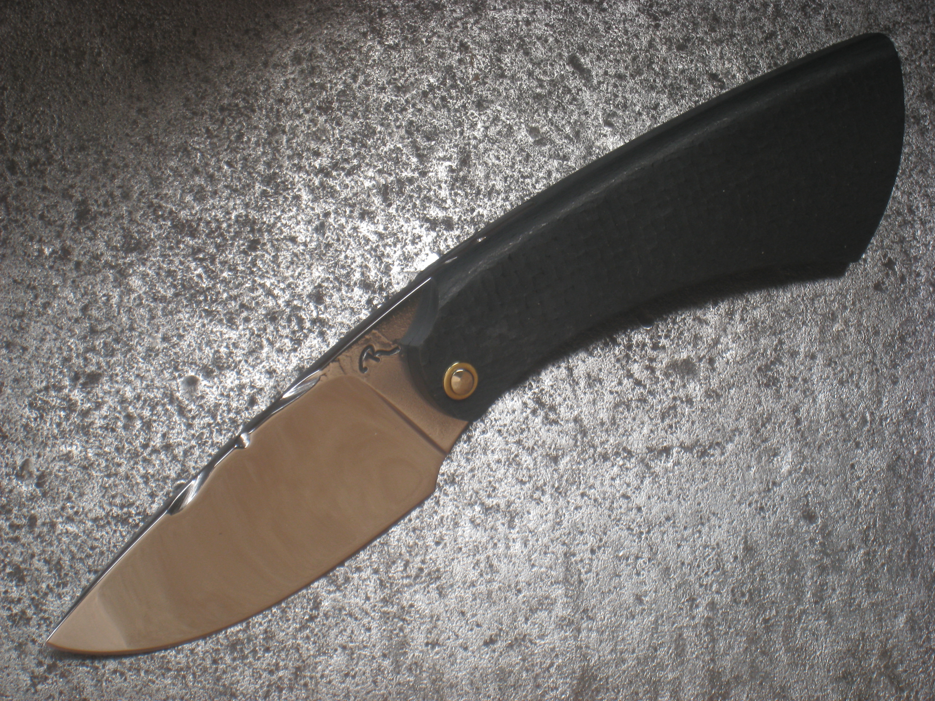 Piémontais avec plaquettes en cuivre et lame xc75 polie miroir. Réservé.
