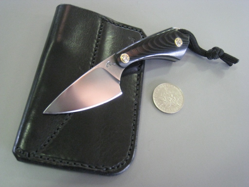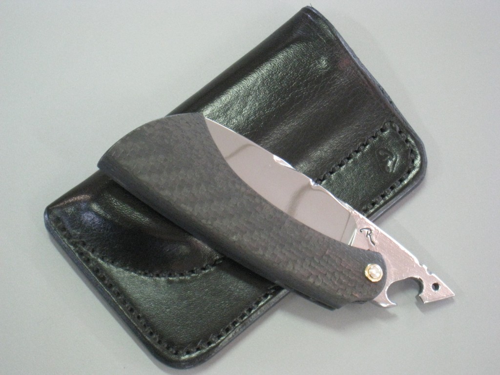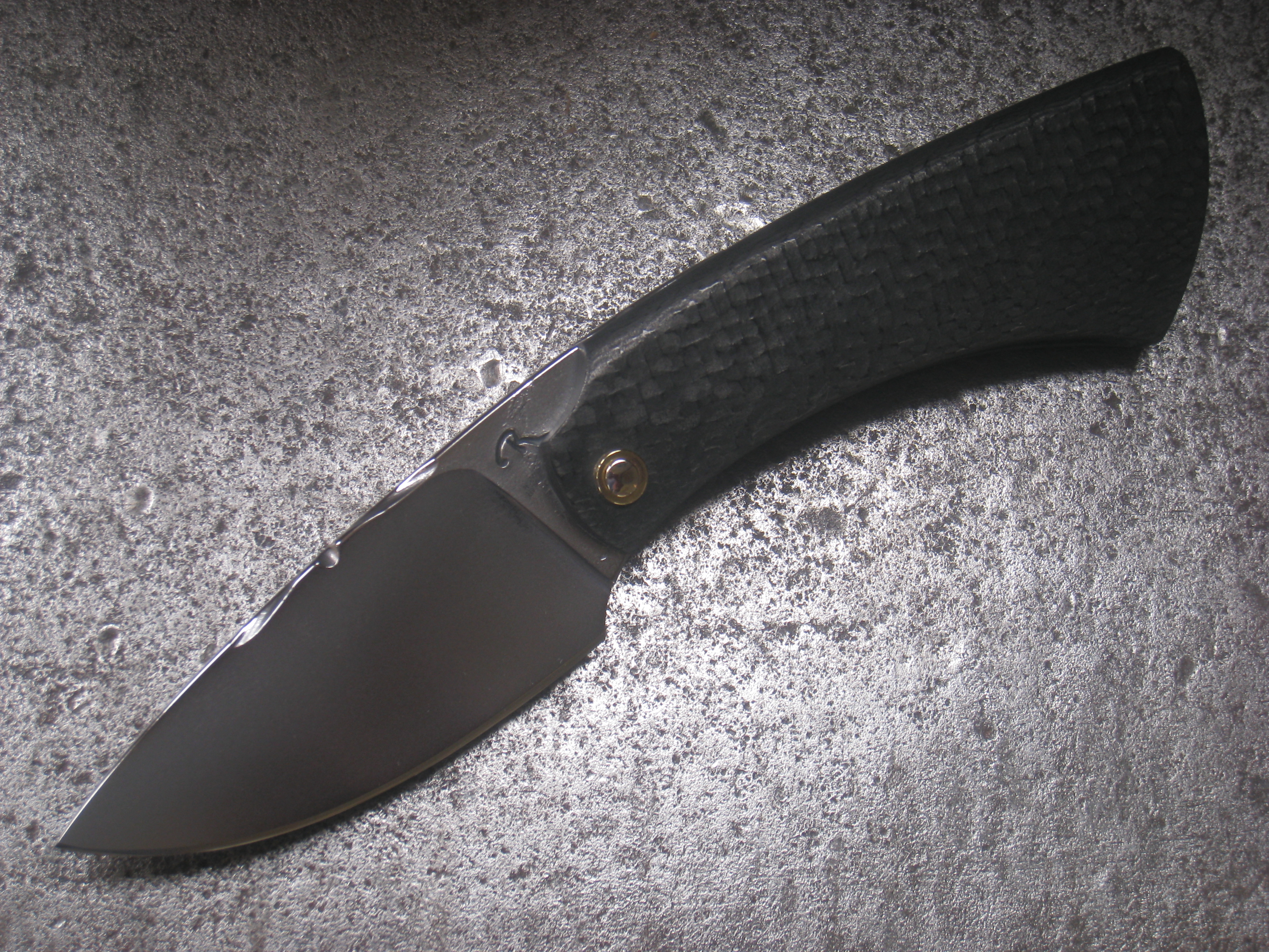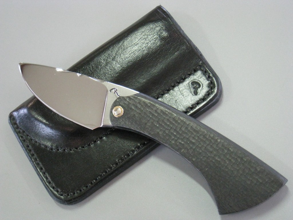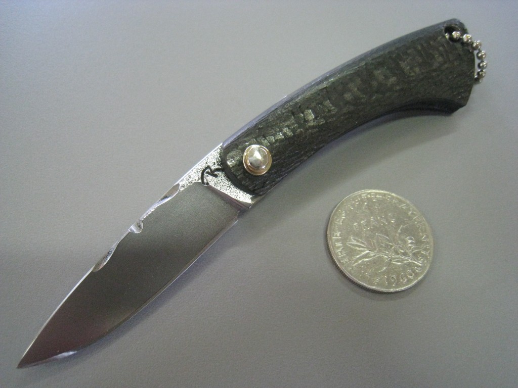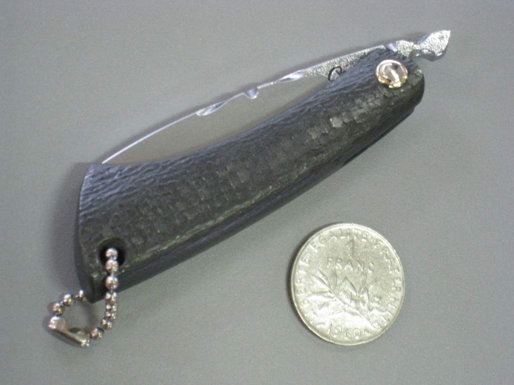Un petit fixe et sa pochette. Lame Xc 75 avec plaquettes fibre de carbone structurée.Vendu.