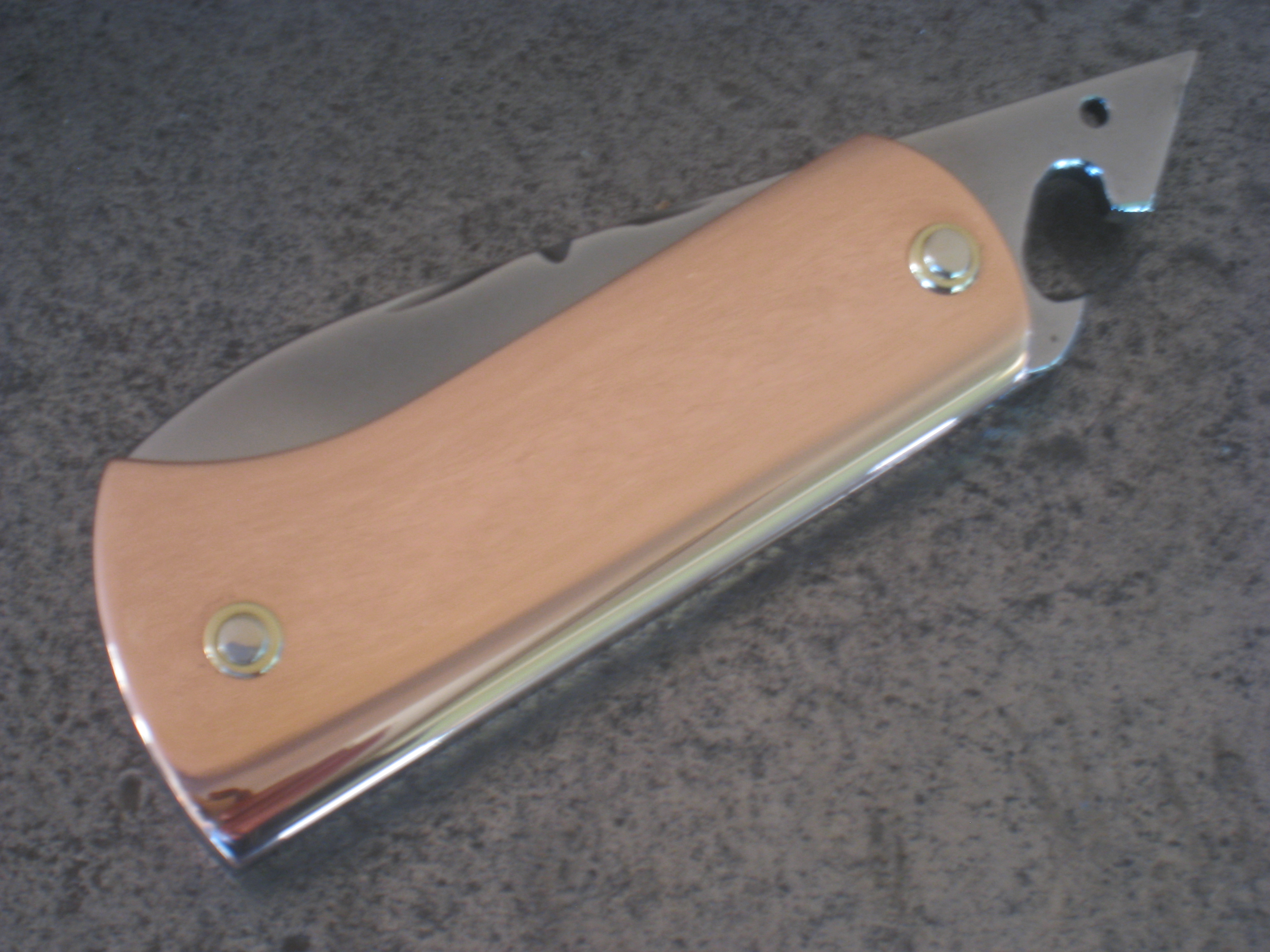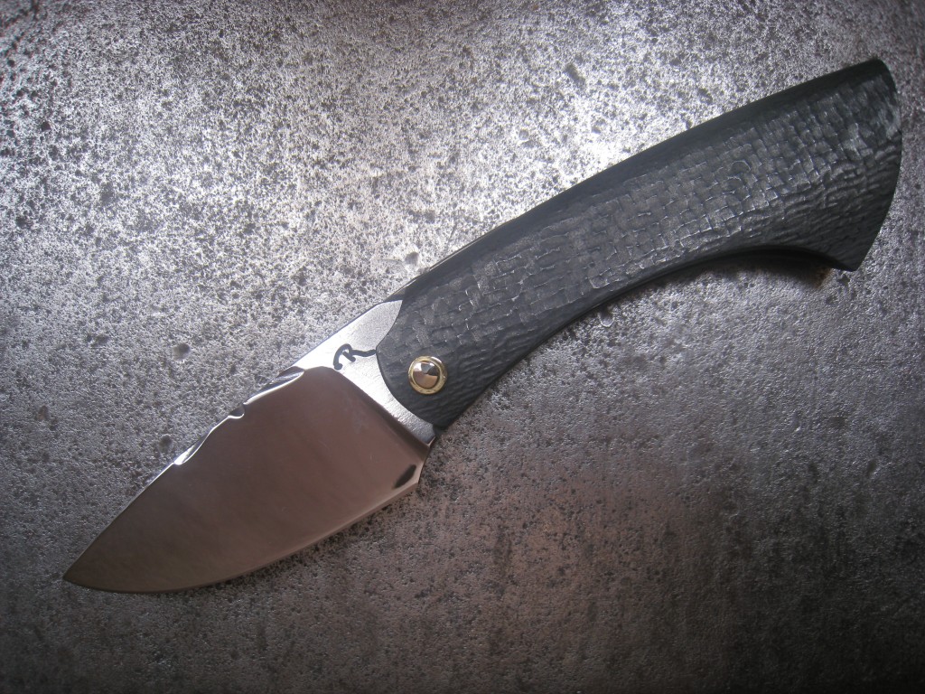 Un petit fixe et sa pochette. Lame Xc 75 avec plaquettes en Orme stabilisé.Vendu.