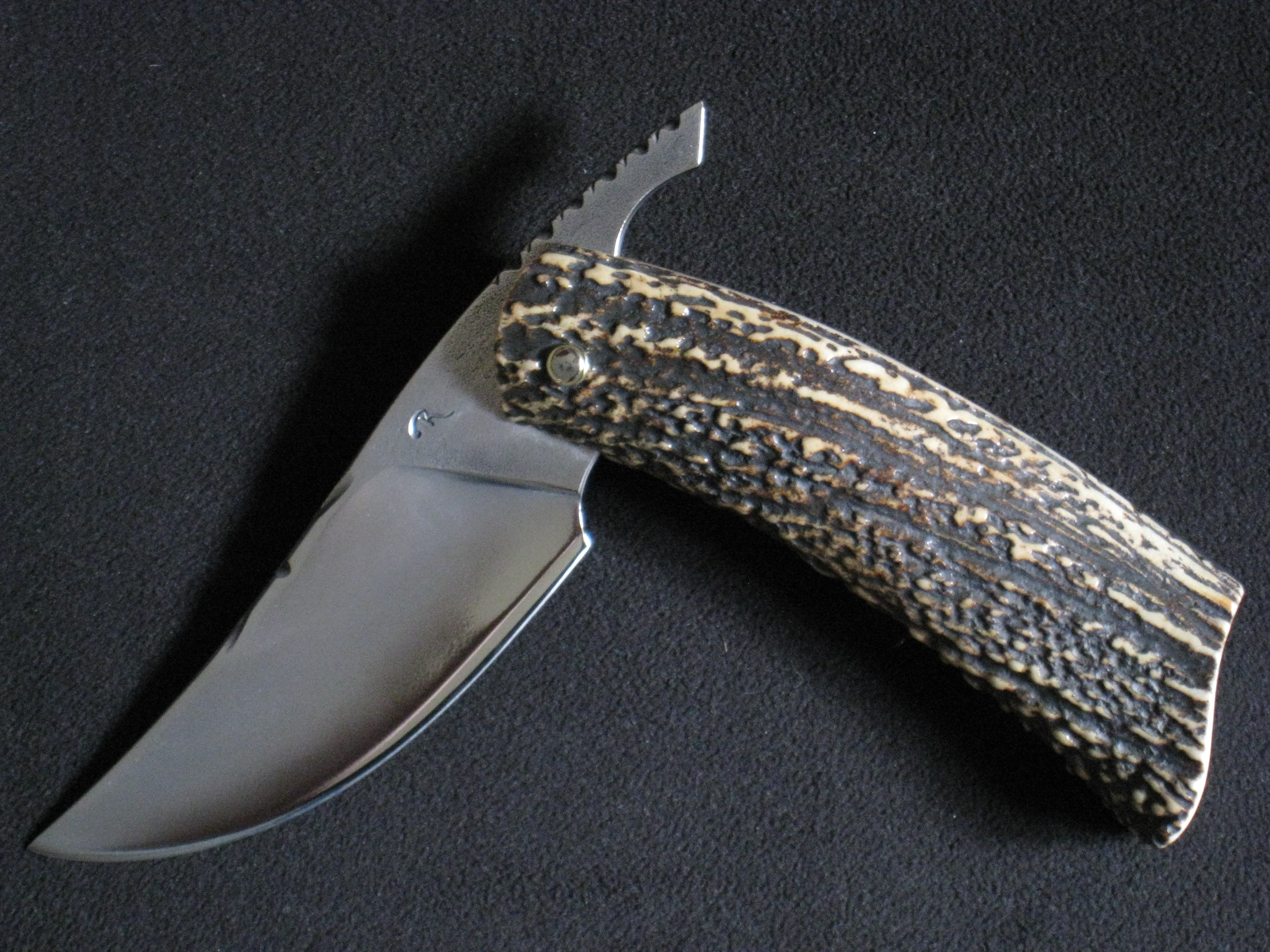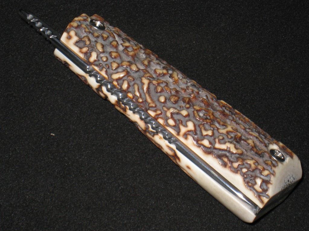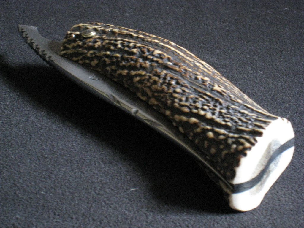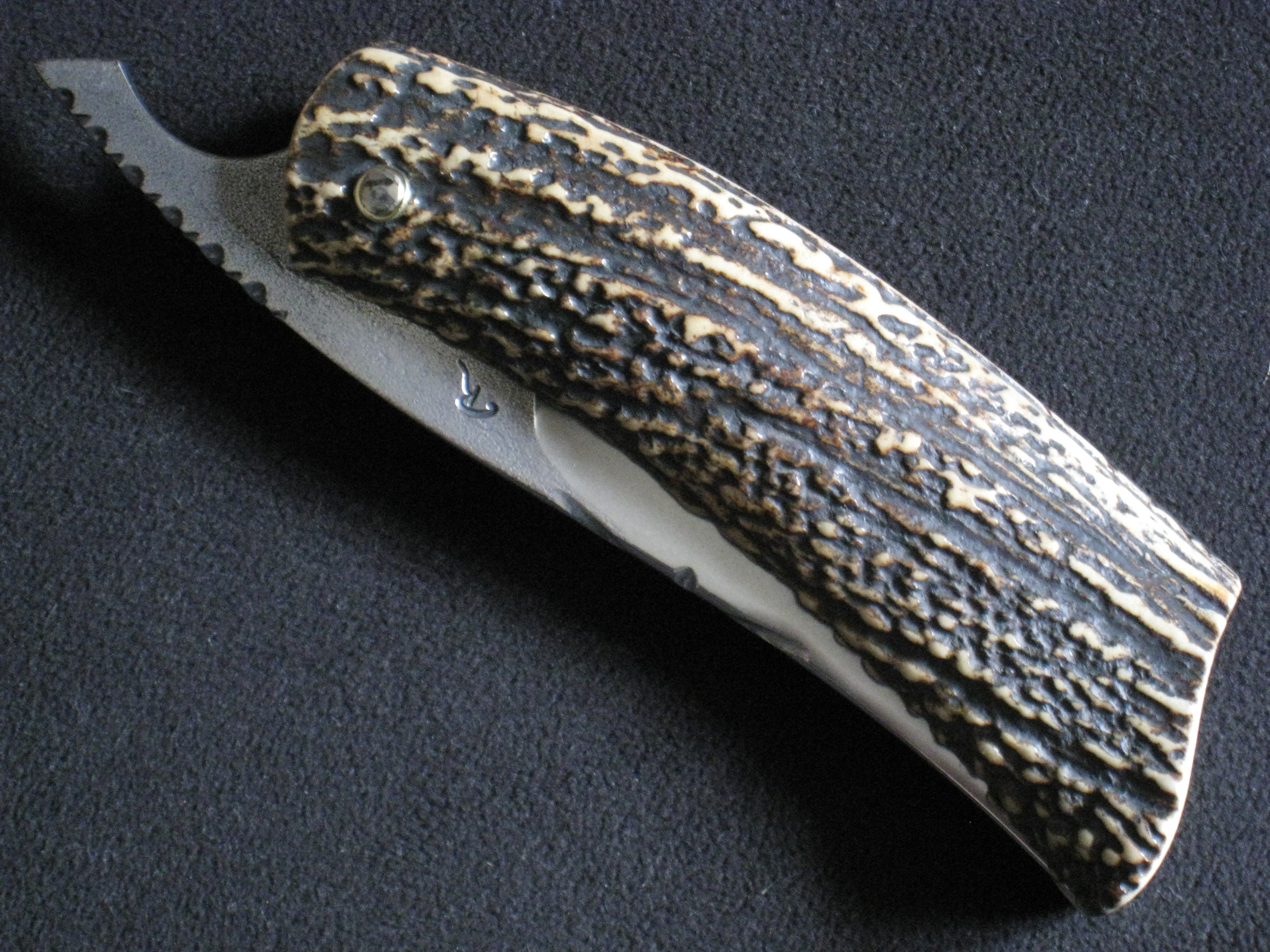 Un « Grand chasse » avec manche Cerf et son étui cuir. Vendu.